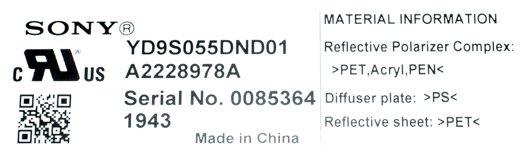• Model matrycy: YD9S055DND01