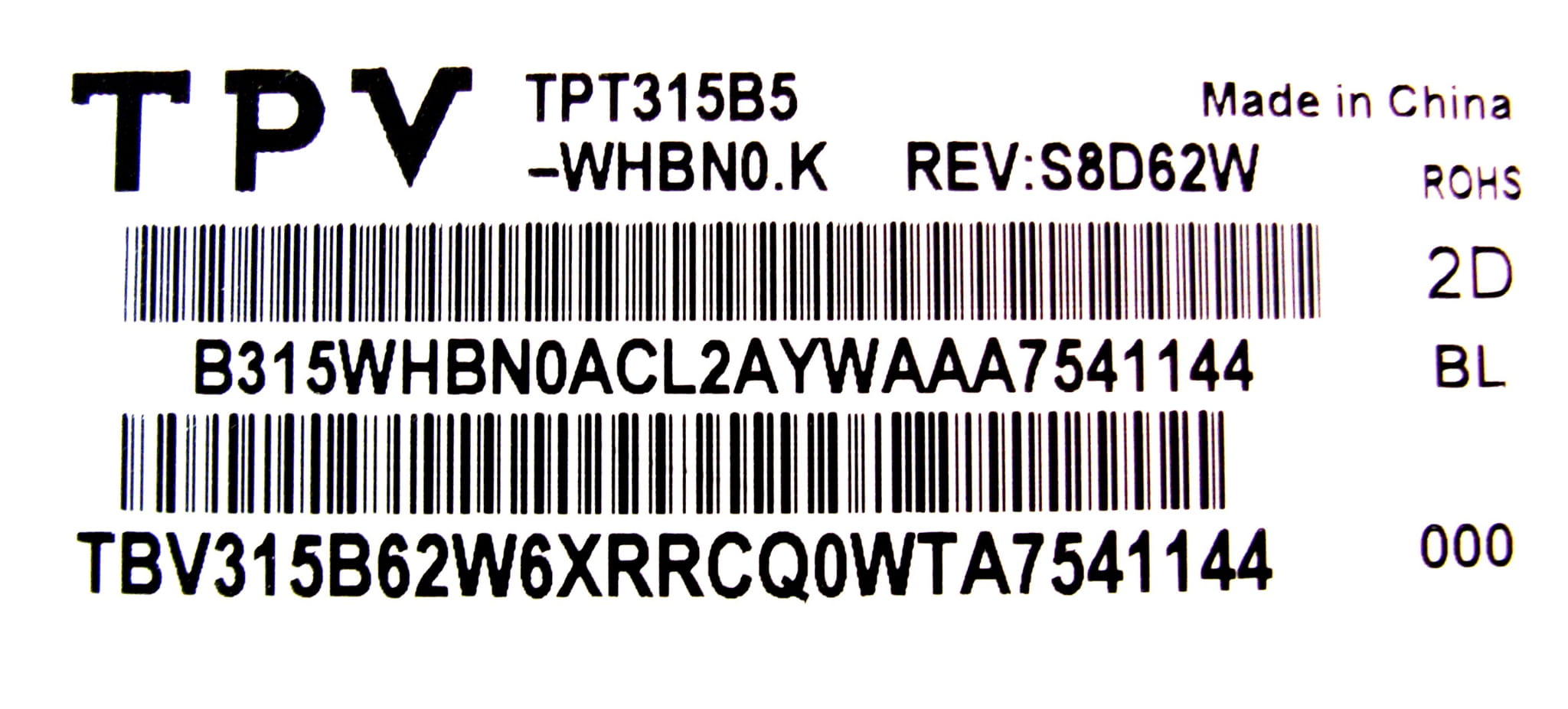• Model matrycy:  TPT315B5-WHBN0.K REV:S8D62W