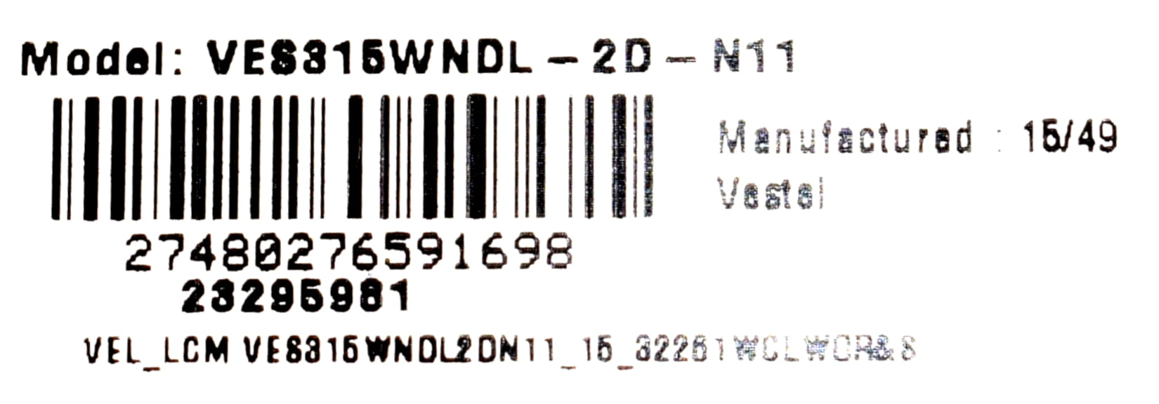 • Model matrycy: VES315WNDL-2D-N11