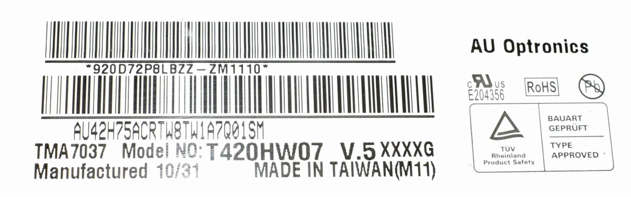 Kod produktu: T420HW06 V2 CTRL BD