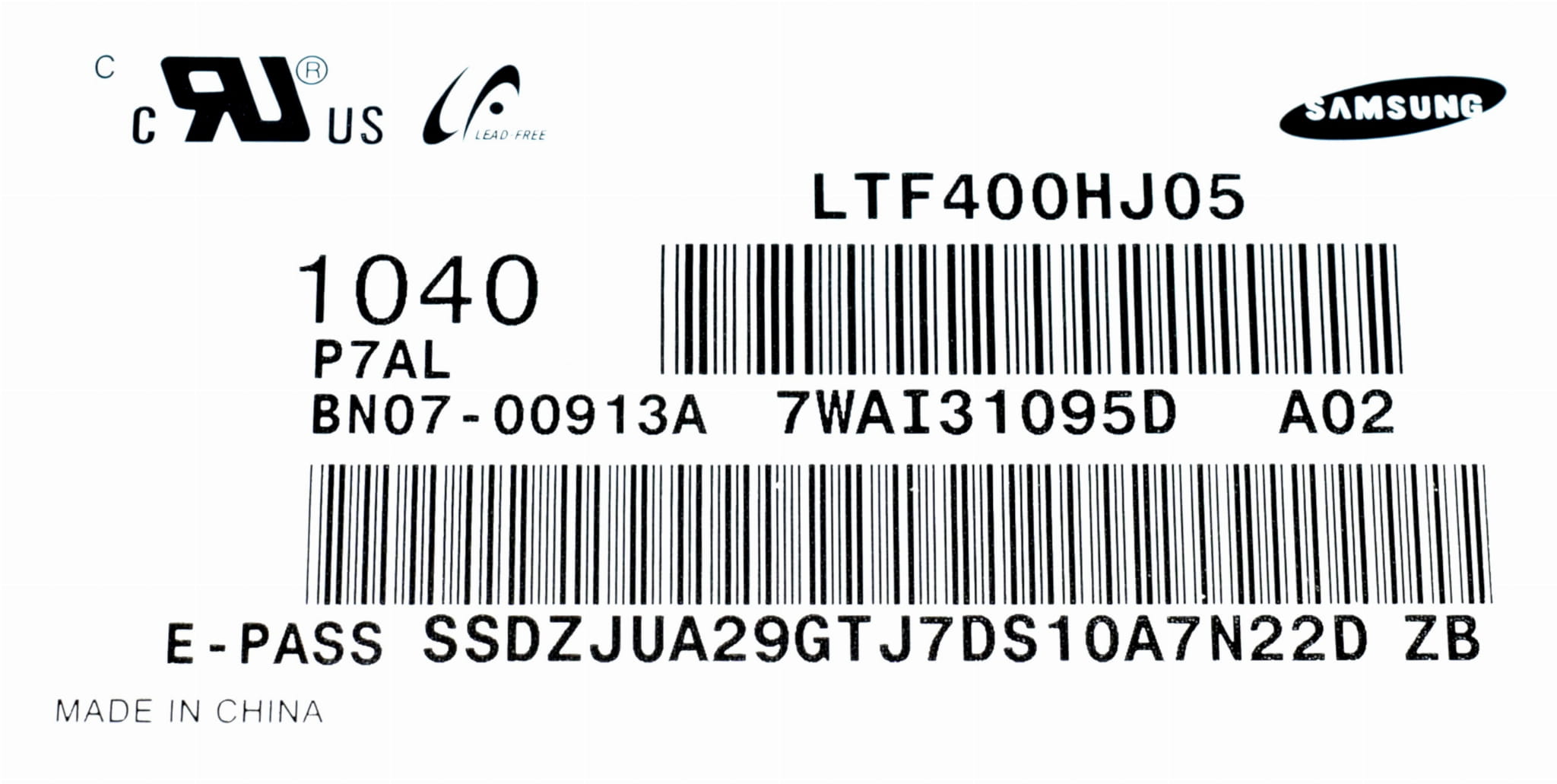 • Model matrycy: LTF400HJ05