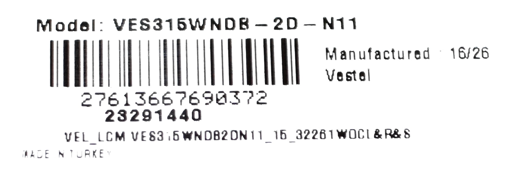 • Model matrycy: VES315WNDB-2D-N11