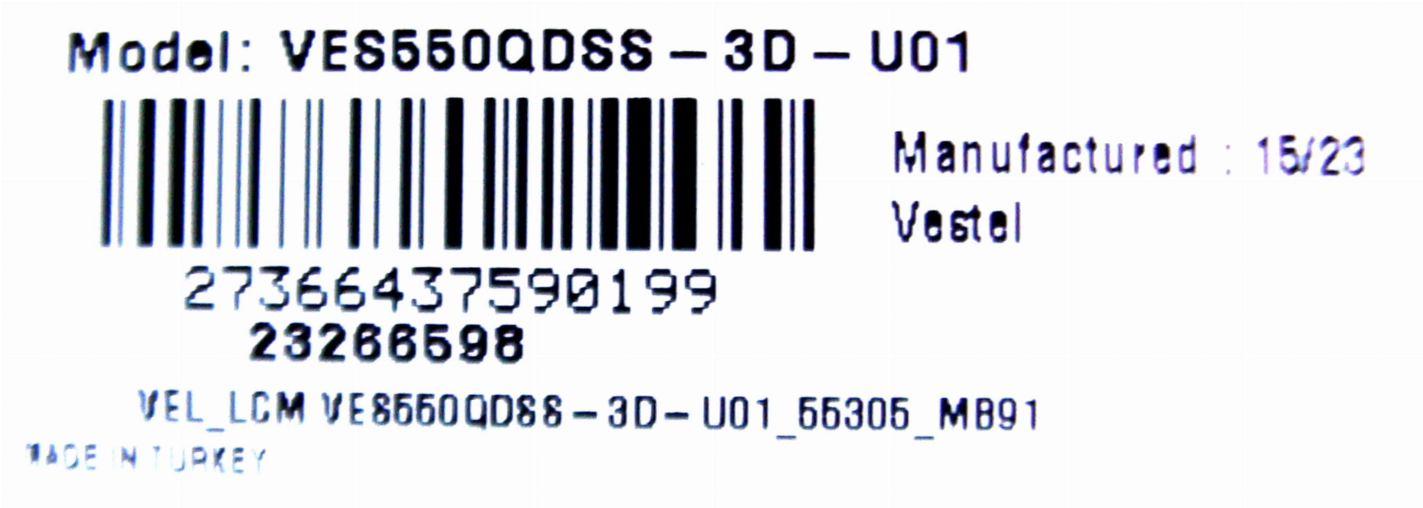 • Model matrycy: VES550QDSS-3D-U01